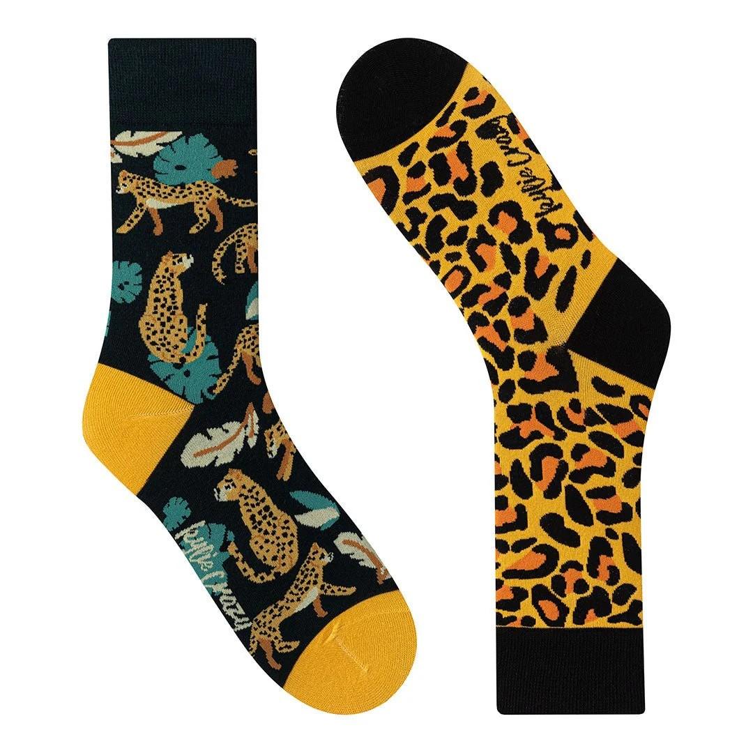 Calcetines “sin costuras” con diseño leopardo, diferentes entre sí pero igual de salvajes. Comodísimos, suaves y con mucho carácter, perfectos para quienes marcan su propio camino.