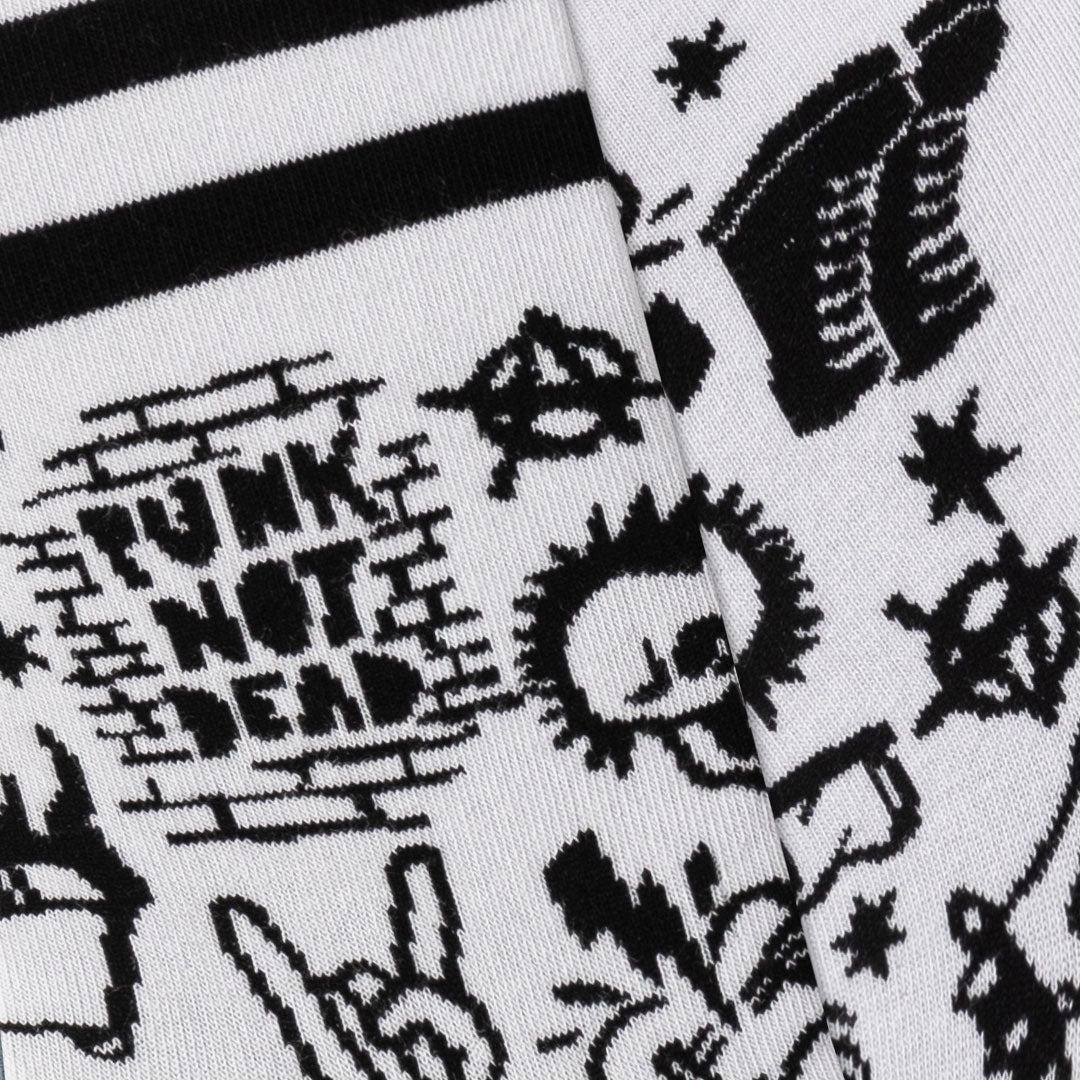 ¿Tienes alma rebelde? Entonces estos calcetines PUNK de Kylie Crazy son tu grito de estilo. Con su diseño gráfico en blanco y negro, repleto de símbolos, calaveras y energía callejera, te recordarán que el punk nunca muere… ni pasa desapercibido.
